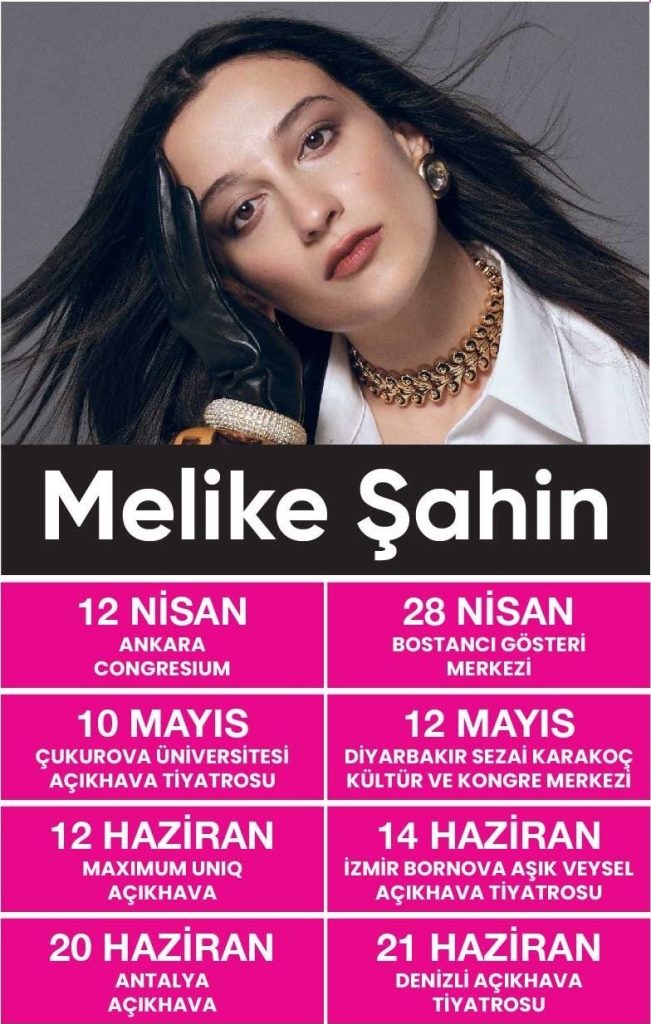 Ankara’dan İstanbul’a, Adana’dan Diyarbakır’a uzanan geniş turne programında, Türkiye’nin en prestijli sahneleri Melike Şahin’in dillere pelesenk olan şarkılarıyla yankılanacak. Açıkhava konserleri ve büyük salon performanslarıyla dikkat çeken turne, müzikseverler için adeta bir şölen niteliği taşıyor.