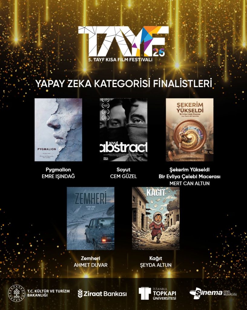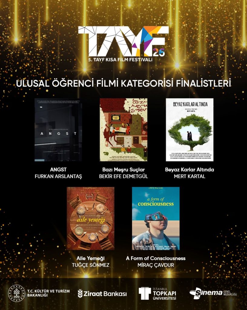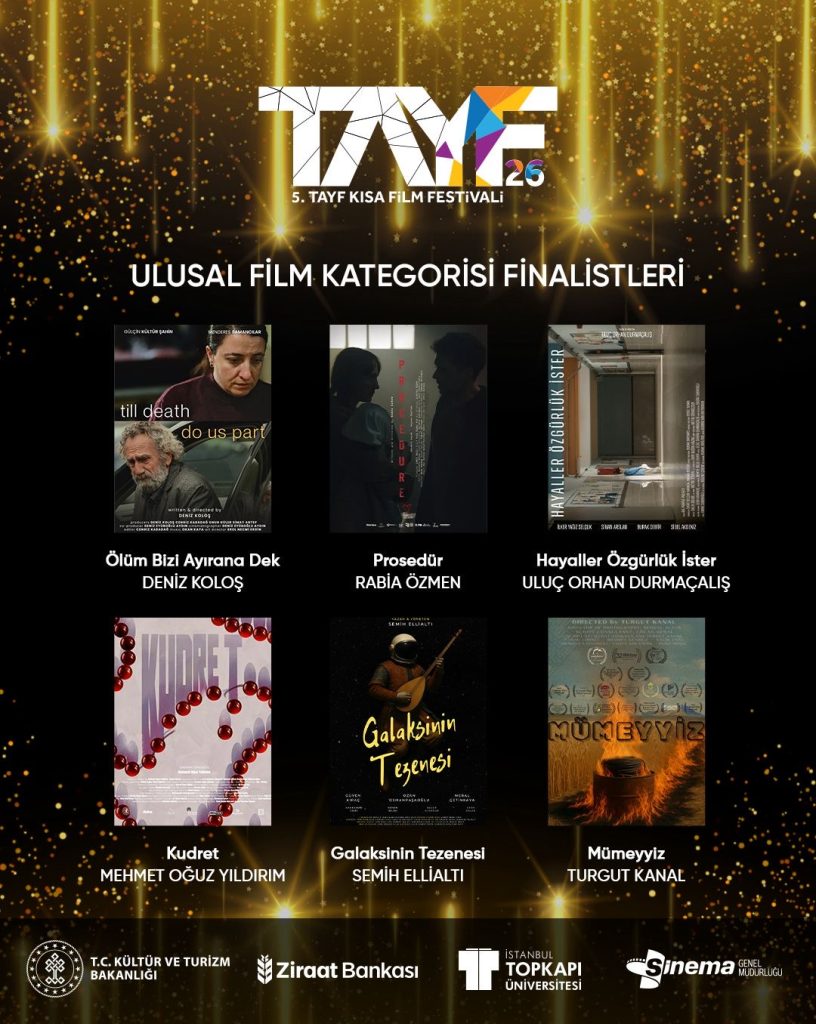 Sinema dünyasının merakla beklediği TAYF Kısa Film Festivali bu yıl da dopdolu bir programla geliyor. 5’incisi düzenlenecek festivalde, yüzlerce başvuru arasından finale kalan yapımlar belli oldu. Sinemaseverleri 9-12 Mayıs 2026 tarihleri arasında unutulmaz bir deneyim bekliyor.